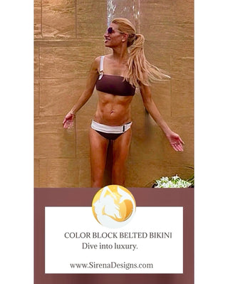 NEW! Color Block Belted Bikini Set (Satin Espresso OR Midnight Blue)